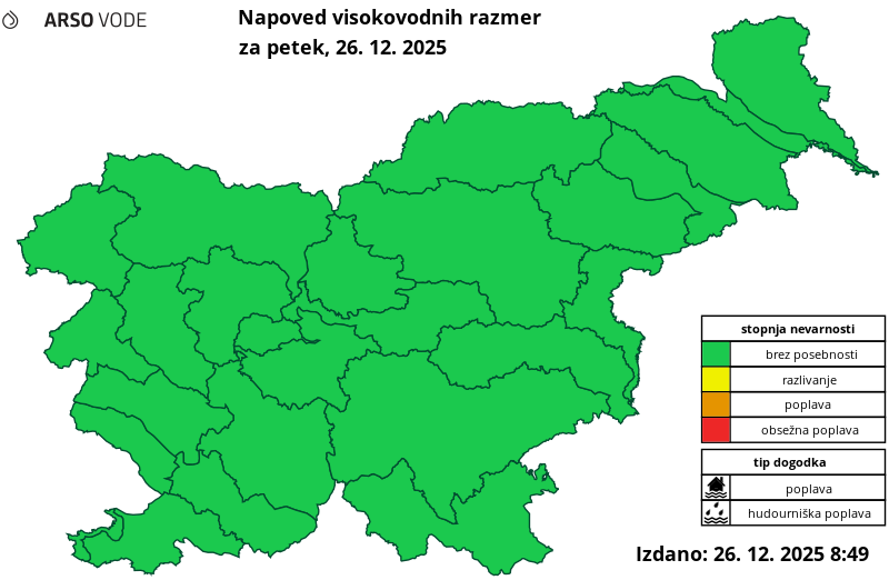 Zaradi narave procesov ni mogoče napovedati in pravočasno izdati opozoril za vse nevarne okoljske dogodke, prav tako lahko prihaja do odstopanj napovedi in opozoril od dejanskega razvoja dogodkov. Več...